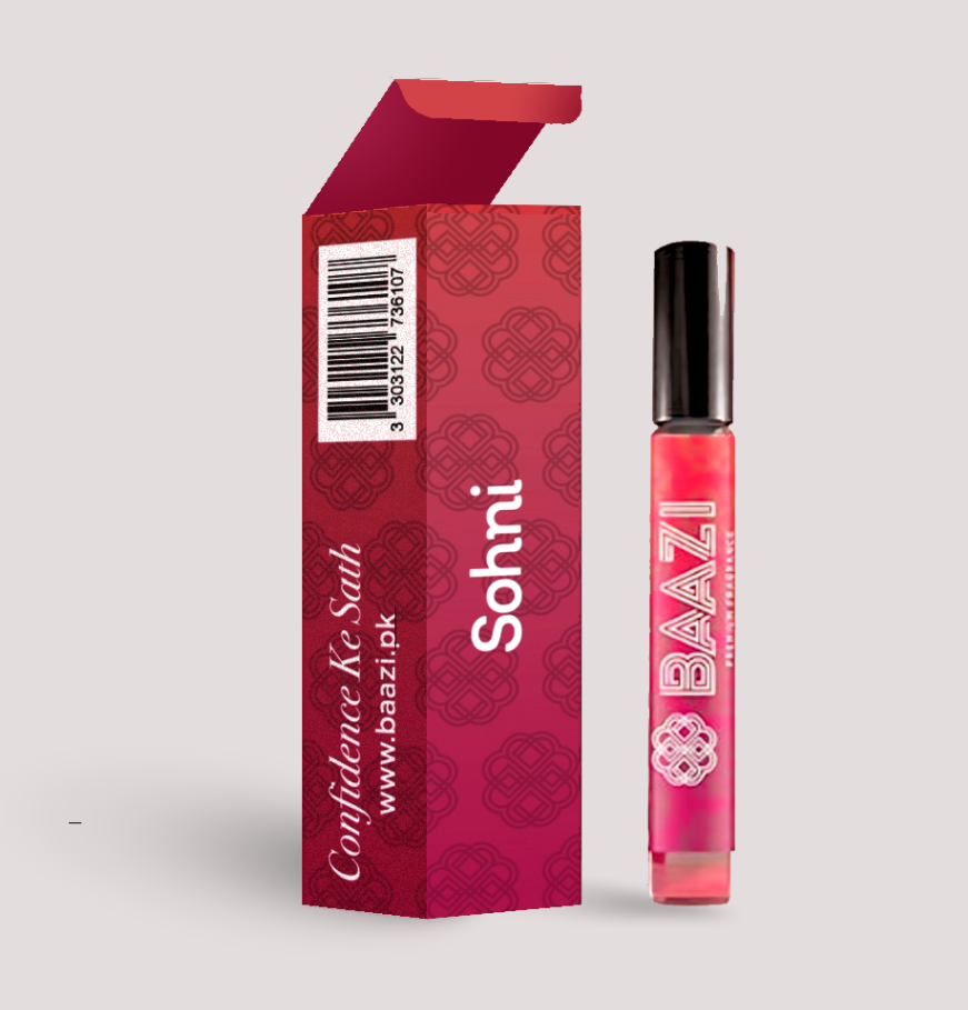 Sohni is a vibrant, playful fragrance that balances floral, fruity, and woody notes. The top notes of peony, pink pepper, and jasmine lead into a rose and white tea heart. The sandalwood and tonka bean base notes add a warm, sensual touch, making it an excellent choice for women who love a lively and bold scent.